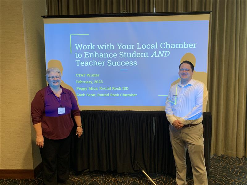 Zach Scott, senior director of workforce and industry development at the Round Rock Chamber, and Peggy Mica, assistant director of Career & Technical Education at Round Rock ISD, recently presented at the Career and Technical Association of Texas Winter Leadership Conference, sharing how strategic collaboration between education and industry is driving student success.